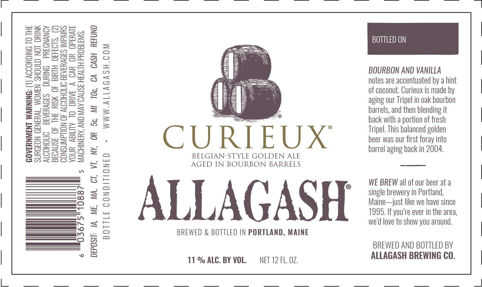 ALLAGASH CURIEUX BOURBON BARREL AGED TRIPEL 750 mL (12)